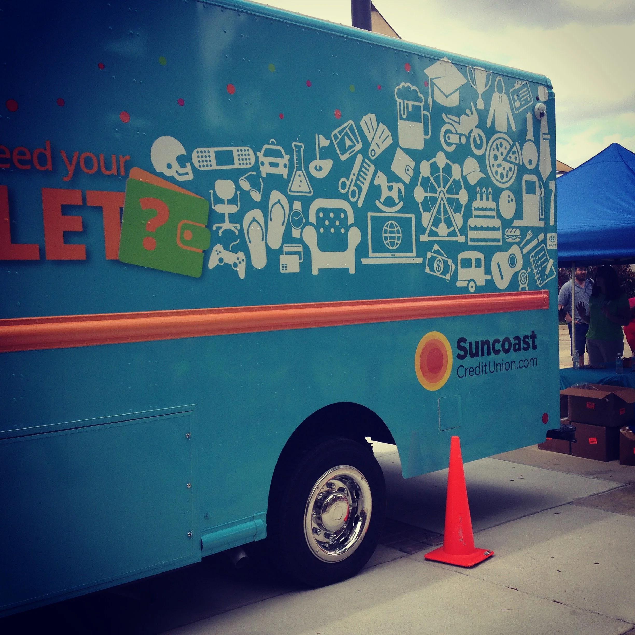How will you feed your wallet? The icons were individually chosen and placed to illustrate the decisions students will tackle each day as they begin their own financial journey for the first time in their lives. Suncoast Credit Union aimed to aid students with support to start on a strong path, helping students understand goals, impulses, wants and needs.